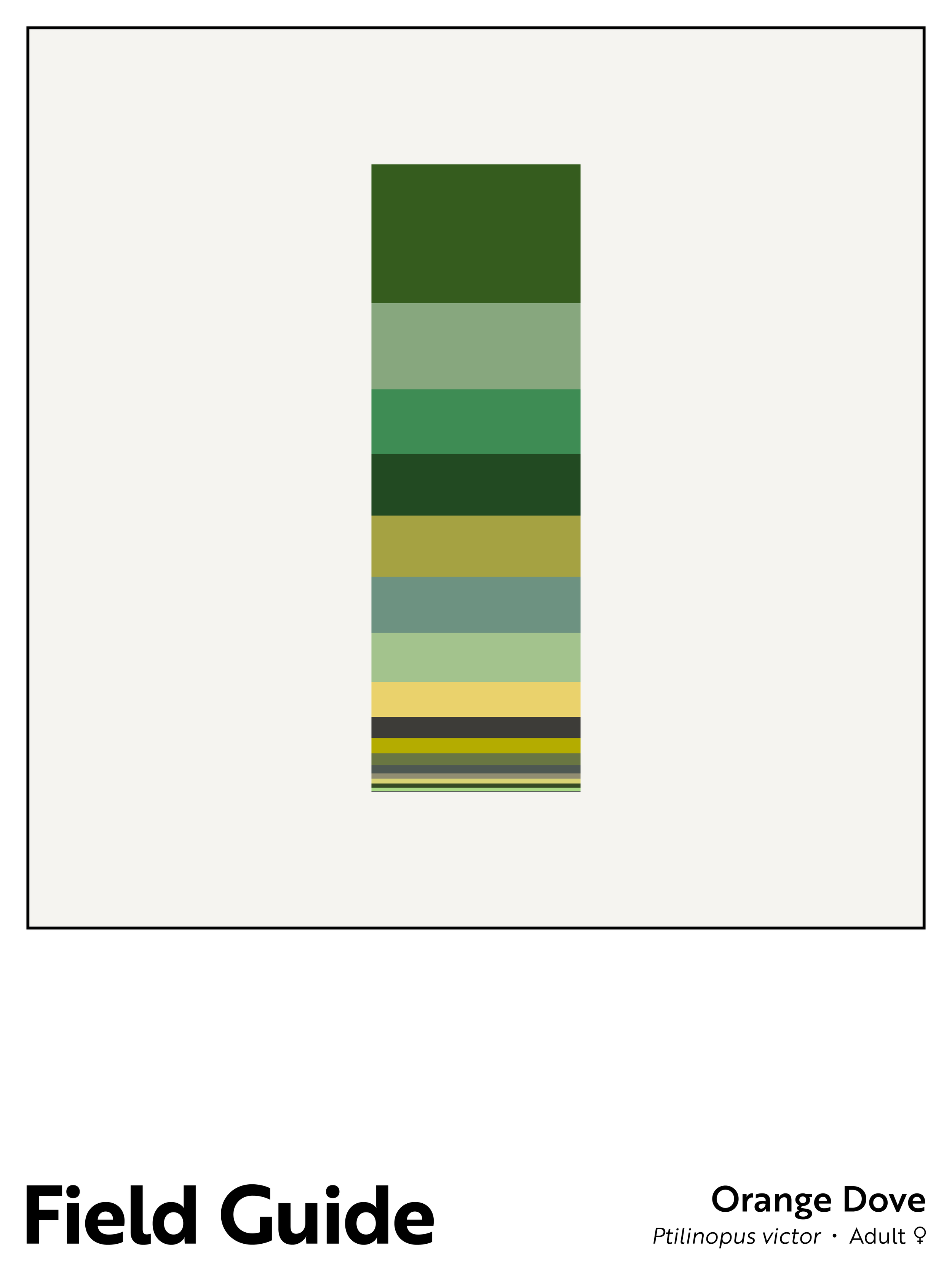 I hope that the Field Guide posters will be appreciated by bird nerds, designers, and lovers of Josef Albers (🟪🟦🟩), but the project is also a playful way for me to both celebrate and critique the necessarily imperfect science (and art) of taxonomy.