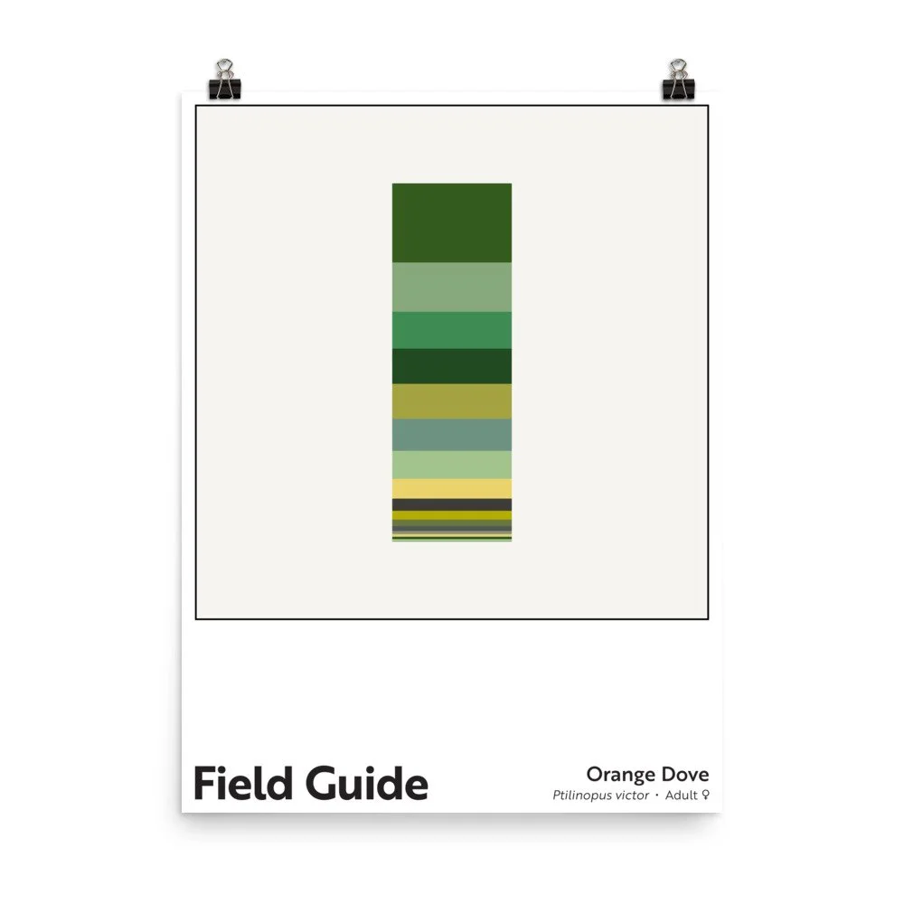 When I released the color column for the male orange dove, I described the species as aptly-named and incredibly flamboyant. That’s only true for the male. Unlike her orange and tangerine counterpart, the female orange dove isn’t orange at all! Were the species named for her, green dove would be more appropriate. But what a lovely green she is, a panoply of hunter and fern greens with viridian, washed out emerald, mint, pistachio, olives, and green gold.